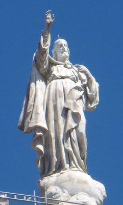En las fotografías podemos ver la imagen de la Basílica del Sagrado Corazón de Jesús, y la que preside la fachada del edificio de la antigua Capilla de la Universidad Laboral, hoy tristemente dedicada a no sabemos muy bien qué.